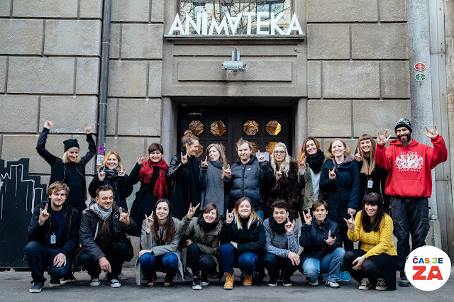 maska v kavarni ni bila print in črke iz stiroporja sem rezala z olfa nožem. samo povem, vprašanj je bilo veliko. vem, ker se v ambientalni svetlobi vsak detajl skrije. na fotkah nista vidni še vilinki, ki sta sedeli vsaka na svoji strani kavarne. ena na soncu na sončni strani, druga na mesecu na senčni strani. obe, da nas popeljeta v globoke sanje. anima in animus. zunaj pa smerokaz za izgubljence, da najdejo pot na vsa festivalska prizorišča, ni jih bilo malo, prav tako ne programa. aja, pa napis nad vrati! ta je tudi pomemben, da ne zavijete mimo. to bi bilo škoda! pa pridite tudi drugo leto. Animateka forever.
