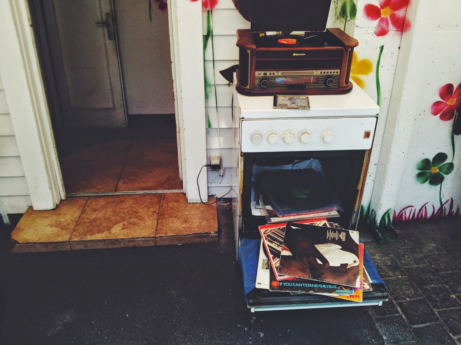 na zgornji fotki ledena kava, ki stane manj kot v mestu, na spodnji pa nalepke in ostale značke, majice in vrečke pa se skrivajo izven okvirja fotke. sabo sem imela celo stojalo robe in cel živalski vrt, vendar so ljudje bolj kot ne samo od daleč firbcali, zato smo imeli mi več časa za pit kavo in kadit čike.