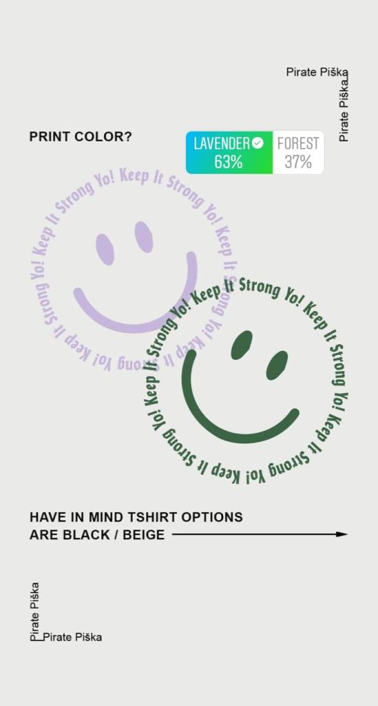 V želji, da omilim grenak priokus trenutne situacije, sem se odločila, da v formatu ig storyja pripravim predloge, jih postavim na poll, pustim, da se stvari dogajajo same od sebe v določenem časovnem okvirju 24-ur in na koncu preverim kaj ste pretvorili v zaključen izdelek. Inspiracijo za motiv sem črpala in si sposodila pri Yo! Keep It Real Season II kolekciji, saj sem želela ohraniti točno to sporočilnost.